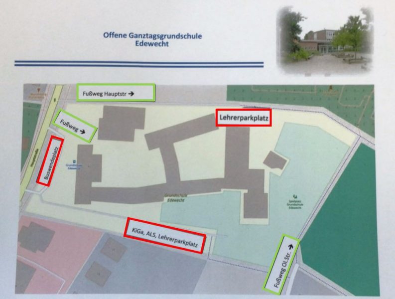 In der Unterrichtszeit wird der Fahrradstand der Grundschule (zwischen dem großen Lehrerparkplatz und dem Schulhof mit der Kletterpyramide) verschlossen; nach Schulschluss schließt der Fahrradstanddienst der 2./4. Klasse den Fahrradstand auf.